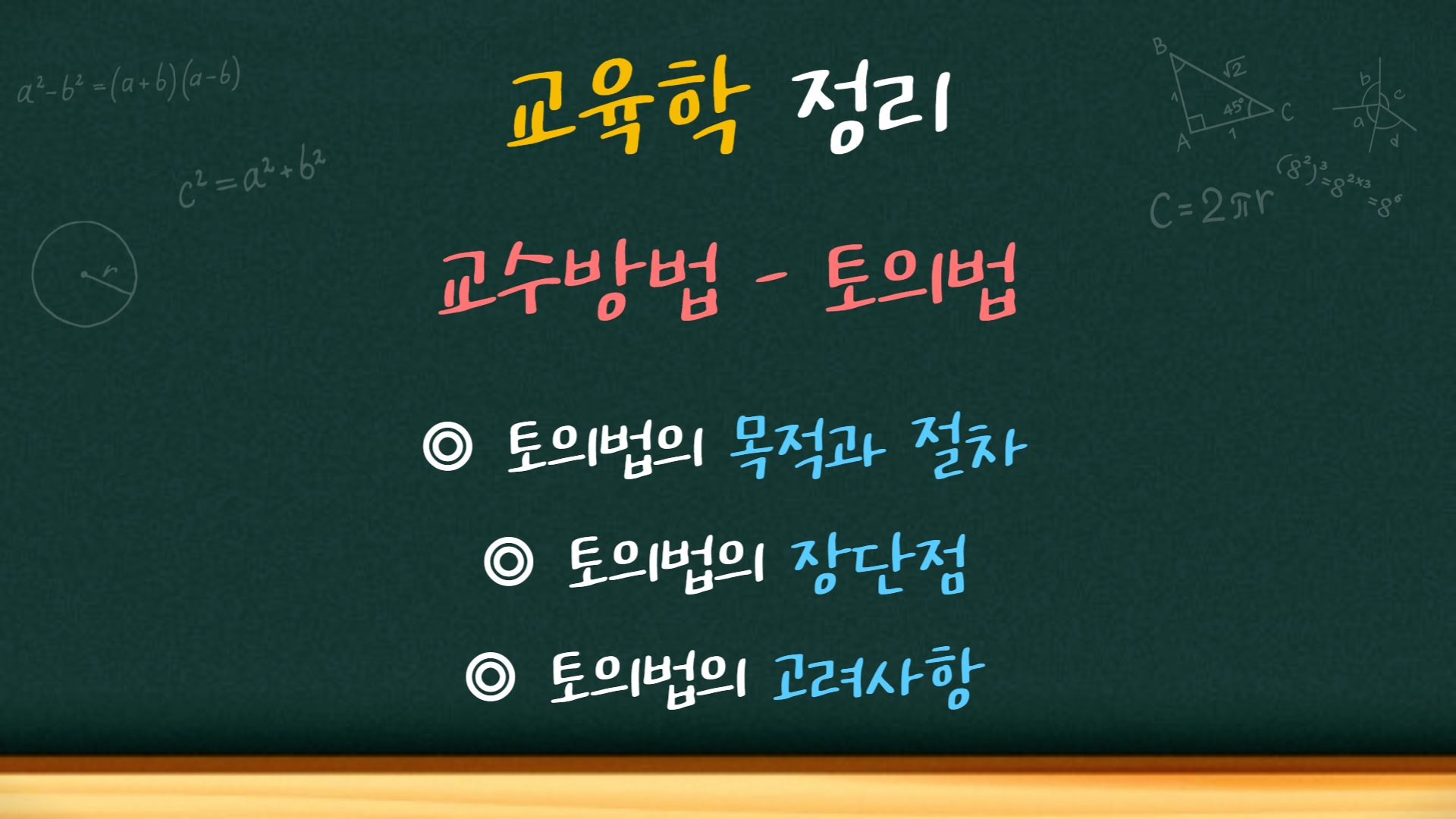 토의법은 2020년도 중등 논술에 등장한 개념인 만큼 반드시 알고 넘어가야 한다. 토의법의 학생의 능동적 참여를 중시하는 최근의 교육 관심사와 부합하고 또 토의법의 유형도 매우 다양하기 때문에 언제 다시 출제된다고 해도 이상하지 않다. 따라서 토의법은 (1)편, (2)편으로 나누어 토의법(1)편에서는 토의법의 목적과 절차, 장단점과 고려 사항 등 기반적 지식을 다지고 토의법(2)편에서 다양한 토의법의 유형에 대해 다루려고 한다.